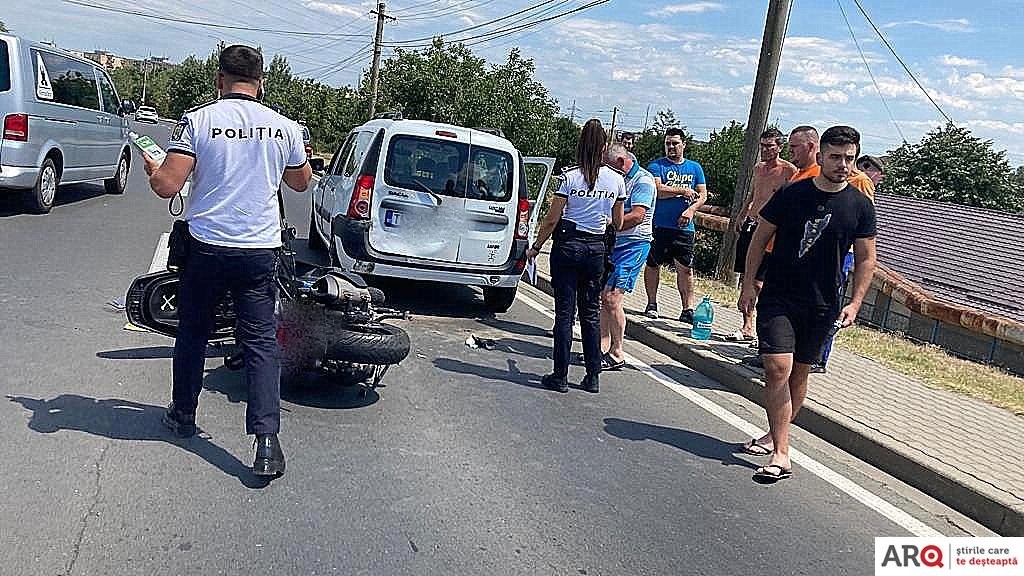 Accident cu motocicletă contra autoturism Dacia