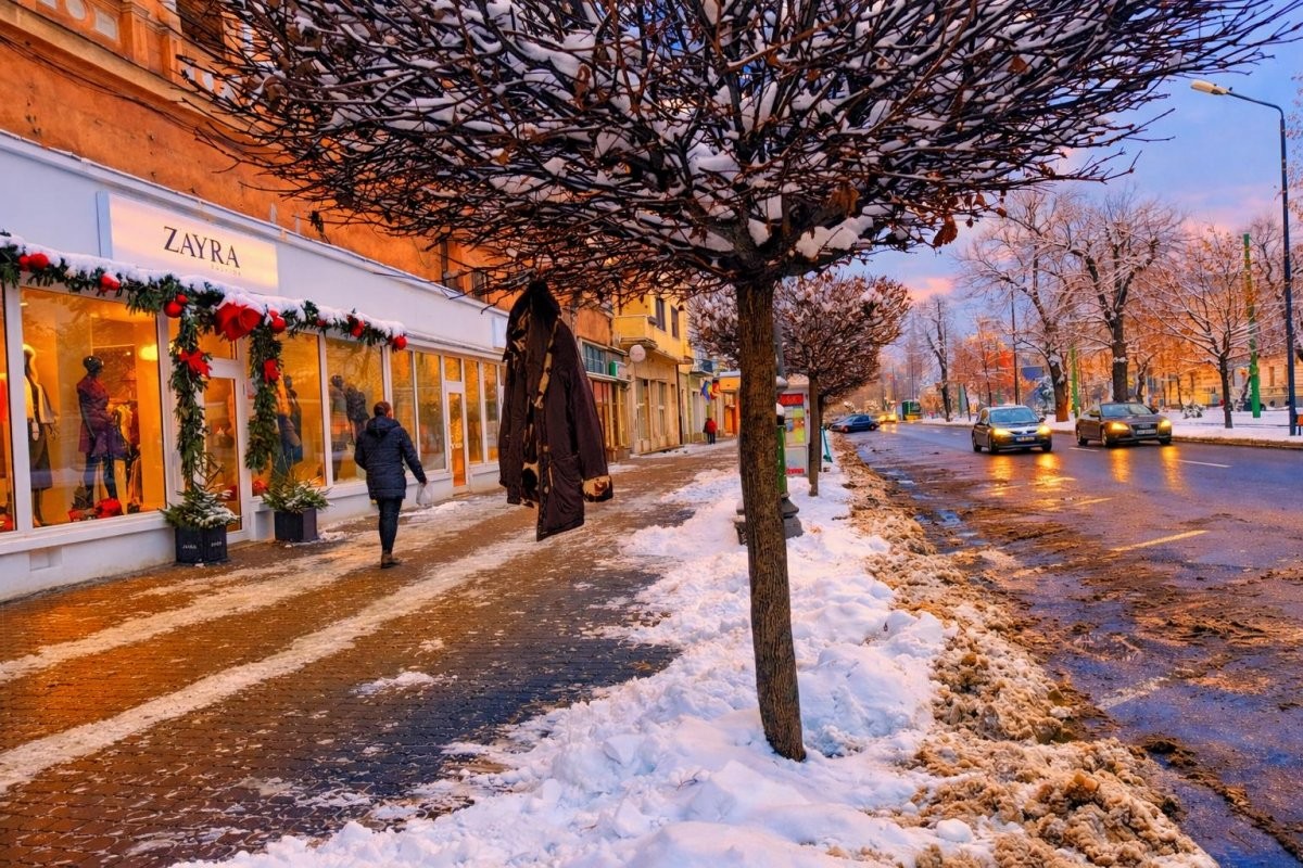 P(r)oza zilei: Aradul în iarnă, cu haine de firmă atârnând prin copaci