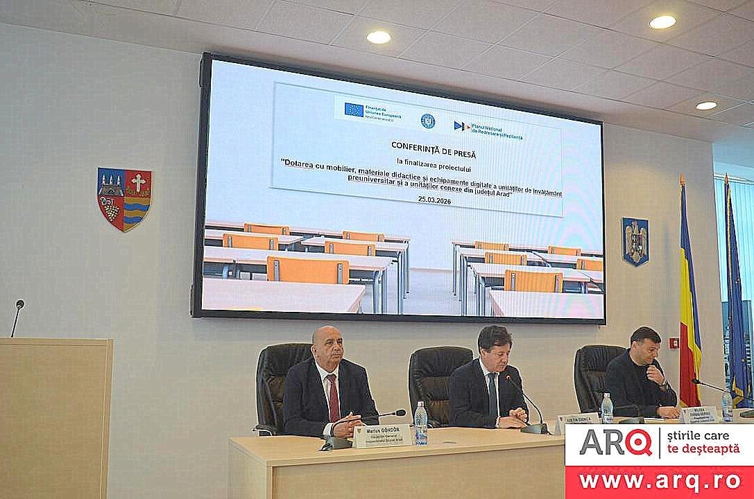 Consiliul Județean Arad a finalizat cel mai important proiect de modernizare a sistemului școlar din județ, dotarea cu mobilier și echipamente IT a aproape 200 de săli de clasă, din 18 unități școlare. Modernizarea a fost posibilă printr-un proiect european, intitulat „Dotarea cu mobilier, material didactice și echipamente digitale a unităților de învățământ preuniversitar și a unităților conexe din județul Arad” și accesat de către Consiliul Județean Arad și finanțat prin Planul Național de Redresare și Reziliență (PNRR). Acestui proiect i se alătură celelalte două, pentru sistemul educațional, prin care s-au cumpărat microbuzele electrice pentru transportul copiilor la școală.